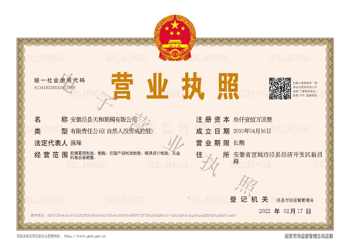 - 安徽涇縣天和泵閥有限公司(原安徽涇縣天誠泵閥有限公司)位于皖南涇縣。涇縣是國內的有名的紅色旅游勝地、更是聞名于世的宣紙之鄉,涇縣南距世界公園黃山70公里 ,西臨九華山70公里,襟抱太平湖,緊鄰205國道,交通十分便利...